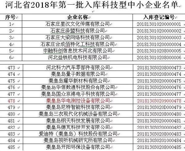 近日獲悉,秦皇島華電測控設備有限公司被納入河北省2018年第一批 “國家科技型中小企業信息庫”企業。根據《科技型中小企業評價辦法》(國科發政〔2017〕115號)和《科技型中小企業評價工作指引(試行)》(國科火字〔2017〕144號)要求,我公司通過公示,正式納入,入庫登記編號為 201813030209000478。