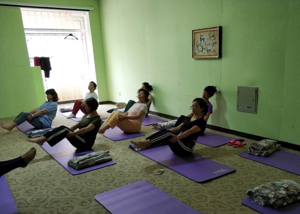 在優美柔和的音樂中,老師一邊帶領大家學習動作,一邊講解學習要領。在動與靜的結合中,通過放松全身來提高身體的協調性。老師帶領學員們做腹式呼吸,拉伸動作,平靜心情,還對學員逐個進行矯正。