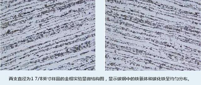 今年4月份,華電測(cè)控向美國(guó)電力公司交付了兩套高精度無(wú)盲區(qū)云母水位計(jì),美國(guó)電力公司要求所有產(chǎn)品均應(yīng)符合SA106 Gr. B標(biāo)準(zhǔn),安裝前進(jìn)行了取樣,分別截取了兩支直徑為1 7/8英寸的樣品,進(jìn)行了金相實(shí)驗(yàn)和化學(xué)成分檢測(cè);一支直徑為1英寸的樣品,進(jìn)行化學(xué)成分檢測(cè)。