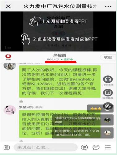 12月15日由劉吉川總經理在千聊直播間開講的《火力發電廠汽包水位測量技術》熱控課程圓滿結束。歷時兩個小時,在線收聽人次到達2000人。