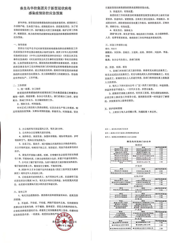 1月27日,秦皇島華控集團有限公司響應國務院辦公廳下發的“關于延長2020年春節假期”的通知,在集團內部立即下發了“關于延長集團員工春假假期至2月3日”的通知。