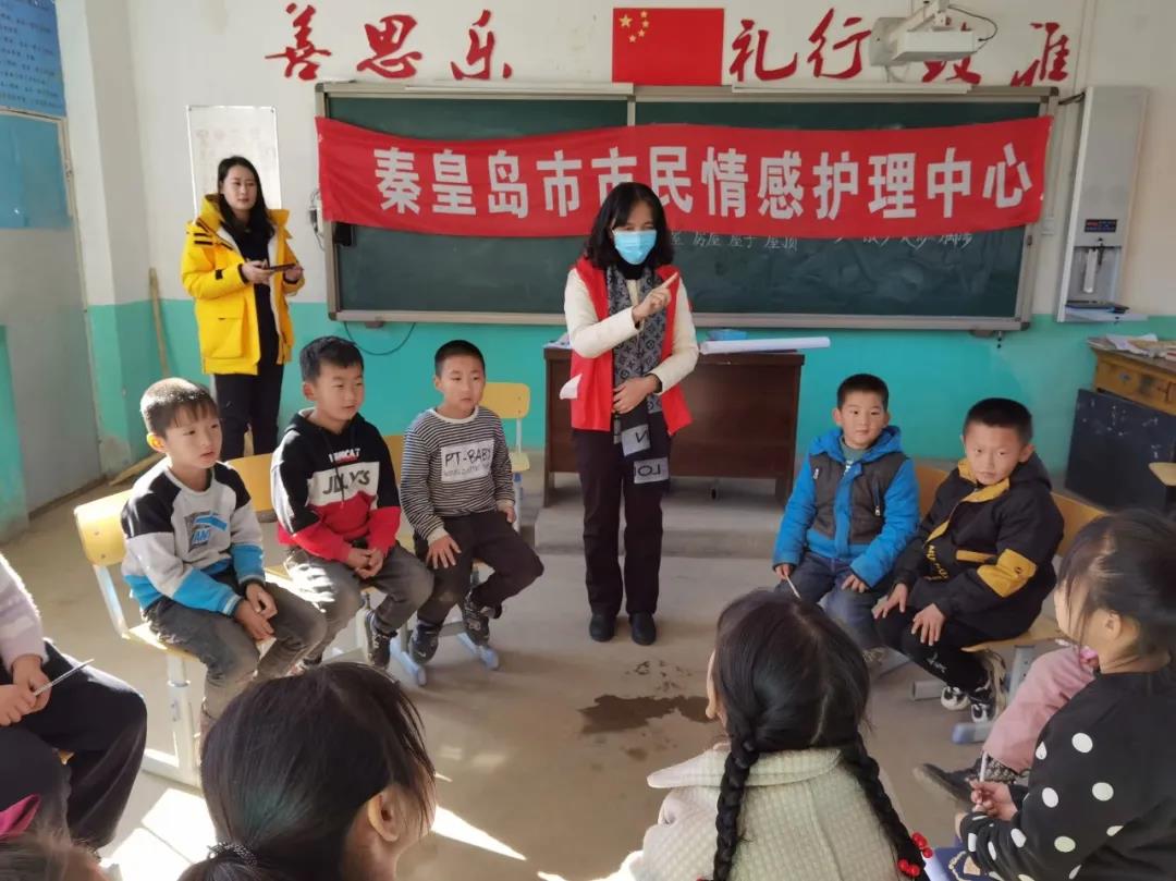 2020年11月27日秦皇島市市民情感護(hù)理中心的心理老師和志愿者一行12人,驅(qū)車一小時來到位于秦皇島市海港區(qū)最偏遠(yuǎn)的山區(qū)小學(xué)九門口和東賀莊小學(xué),為山里的孩子們送去滋養(yǎng)心靈的心理健康活動課。
