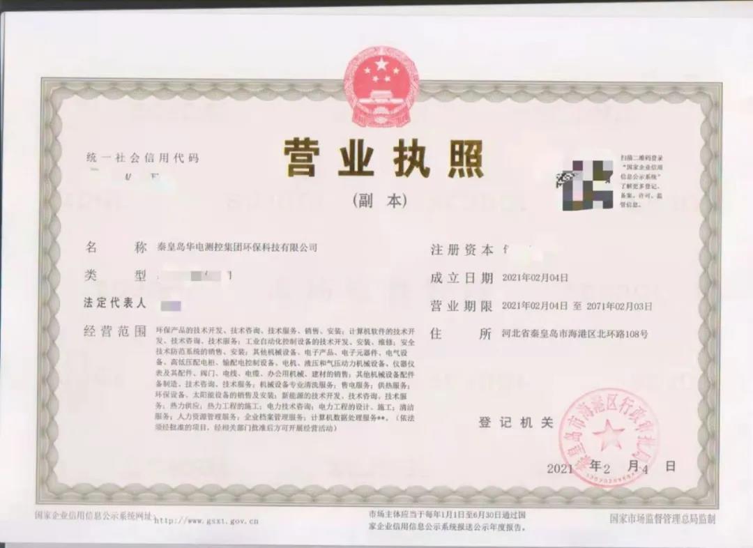 【企業動態】熱烈慶祝秦皇島華電測控集團環保科技有限公司注冊設立