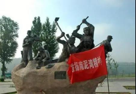 南泥灣位于延安城東南45公里處,方圓百里。1941年春,由于當時國民黨反動派對陜甘寧邊區及抗日根據地實行經濟封鎖,所以,中共中央命令八路軍359旅進駐南泥灣,實行屯墾,生產自救。在短短的三年內,由王震旅長率領的359旅發揚“自力更生,堅苦奮斗”的革命精神,把荊棘遍野、荒無人煙的南泥灣變成“處處是莊稼,遍地是牛羊”的陜北好江南。從1941年起,各抗日根據地的生產運動廣泛開展起來,并取得了顯著成績,被毛澤東譽為“中國歷史上從來未有的奇跡”。