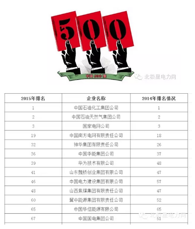 【榜單】2015中國企業500強:電力企業幾家上榜?