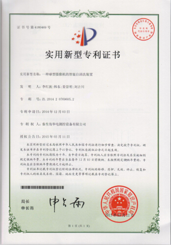 公司于2014年12月03日提交的“一種球型攝像機的智能自清洗裝置”專利已被中華人民共和國國家知識產權局頒發專利證書。