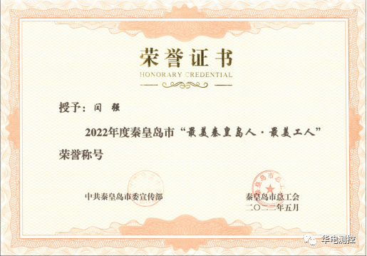 2022年5月,由市委宣傳部、市總工會等部門組成評審委員會,嚴格按照綜合評審、公示等相關程序,秦皇島市“最美秦皇島?最美工人”評選結果揭曉,秦皇島華電測控設備有限公司高壓焊工閆強同志榮獲2022年度秦皇島市“最美秦皇島人?最美工人”榮譽稱號。獲此殊榮,華電測控全體員工向閆強同志表示祝賀!
