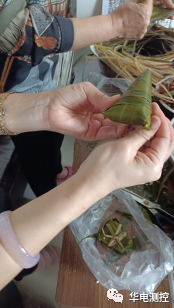 其中一位姐姐包粽子包的非常認真。最開始還包不上呢,姐姐表示一定要包出粽子的4個角來。最后姐姐包的粽子每一個都那樣的精致、完美。臨走前告訴我們:“拿回家給我媽媽煮了吃,這是我包的。”