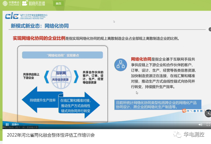 2022年4月27日,為進一步落實《河北省信息化與工業化深度融合發展“十四五”規劃》要求,全面掌握我省工業企業與重點特色產業集群兩化融合現狀和發展趨勢,推動新一代信息技術與實體經濟深度融合,促進企業轉型升級、提質增效,河北省工作和信息化廳組織開展《2022年兩化融合整體性評估工作培訓》會議,各市、縣(區)工信部門兩化融合相關負責人,規模以上工業企業、“專精特新”中小企業等信息化負責人參加。華電測控集團經管管理部副經理賁偉、鄭穎參加了此次培訓。