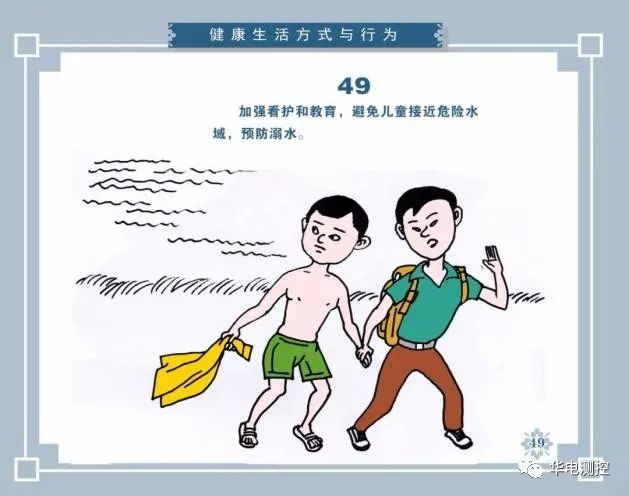 提高健康素養(yǎng),應當從兒童抓起。重點要加強學校、家庭和社會對兒童生命教育的同時,教育家長要加強對孩子看護,預防兒童溺水。《中國公民健康素養(yǎng)—基本知識與技能》第二部分,關于“健康生活方式與行為”,其中第四十九條明確強調:“加強看護和教育,避免兒童接近危險水域,預防溺水。”