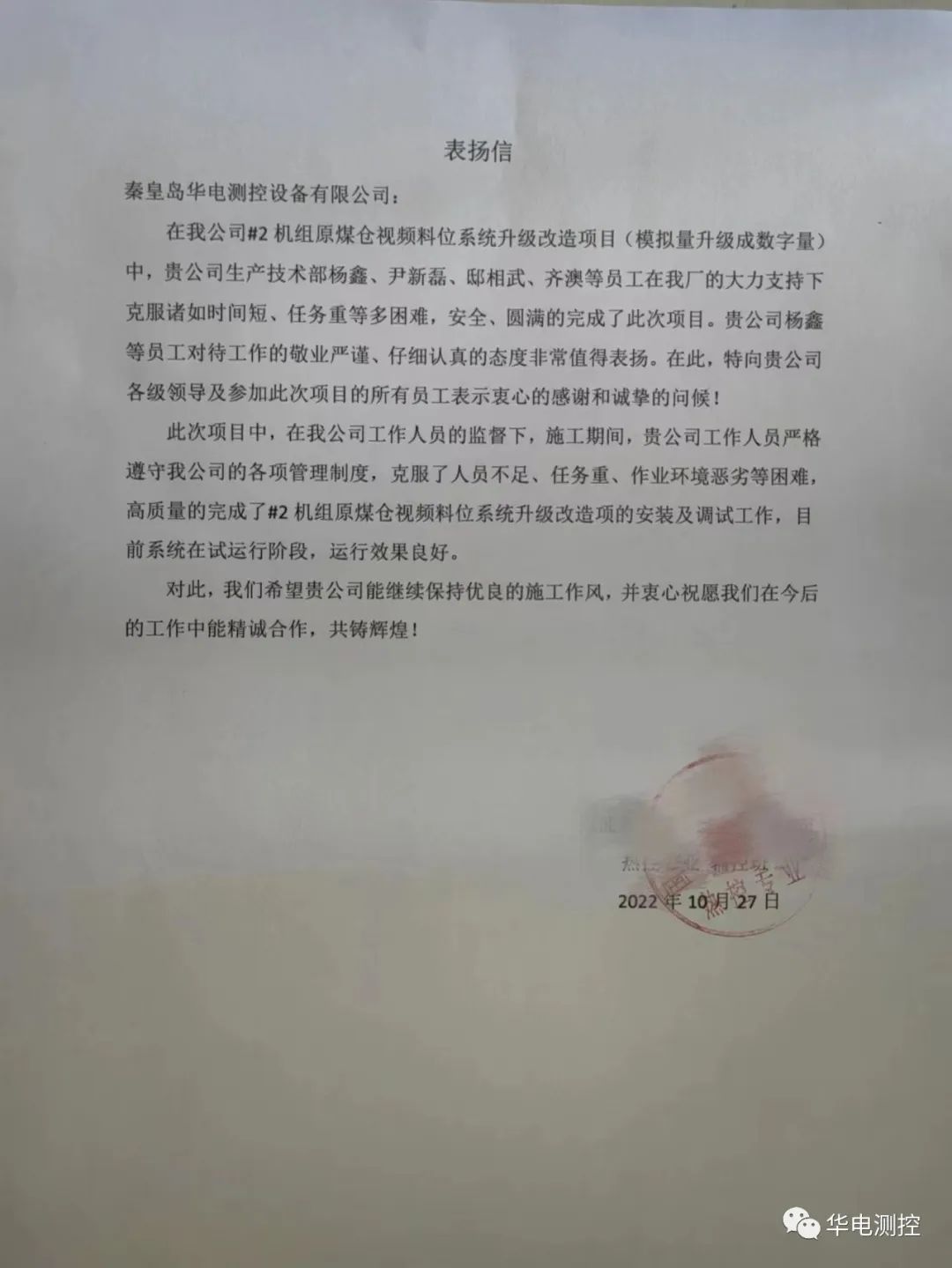 客戶對我們產品和服務的認可,便是我們最大的收獲和動力。秦皇島華電測控設備有限公司一直以來秉承著“以坦誠交朋友,以創新謀發展,以質量求生存,以服務贏信譽,以改進拓市場”的企業經營方針,急用戶之所急、產用戶之所需,為電廠安全運行保駕護航。
