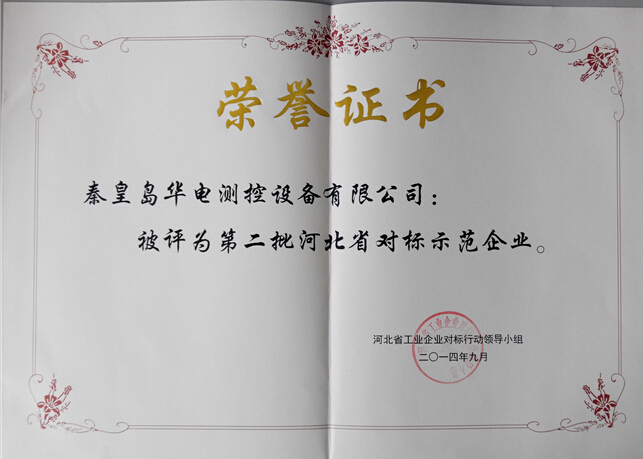 2014年9月,公司被河北省工業(yè)信息化廳工業(yè)企業(yè)對標行動領導小組認定為第二批河北省對標(技術創(chuàng)新類)示范企業(yè),并于近日頒發(fā)了榮譽證書和牌匾。