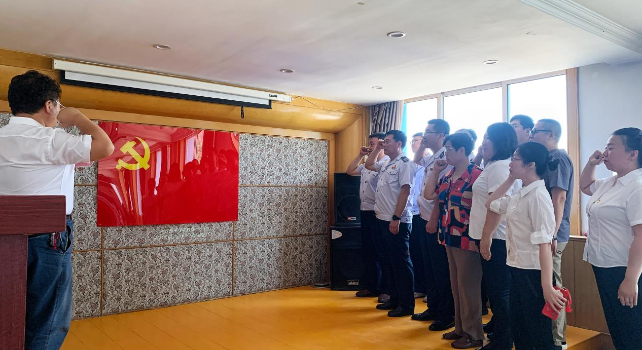 大會開始之初在全體黨員的共同見證下,由中共國家稅務總局秦皇島市稅務局所得稅科支部與中共秦皇島華電測控設備有限公司黨支部共同簽署《黨建共建協議書》,并由秦皇島華電測控設備有限公司黨支部組織委員劉磊同志帶領全體黨員重溫入黨誓詞。
