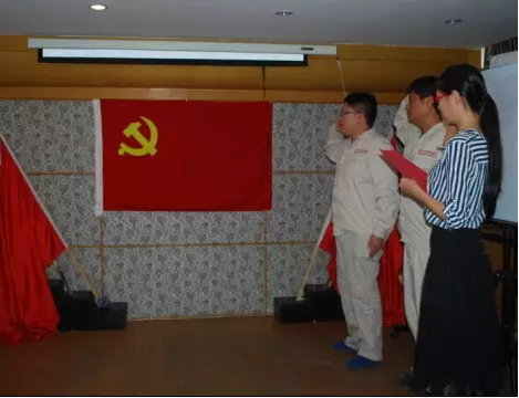 2015年7月31日,是一個神圣的日子,它見證了劉磊、尹新磊兩名同志光榮地加入了中國共產黨。在公司二樓會議室,面對著鮮紅的黨旗,兩名新黨員進行了莊嚴的入黨宣誓儀式。公司黨支部成員以及入黨積極分子共10余人參與了本次活動。