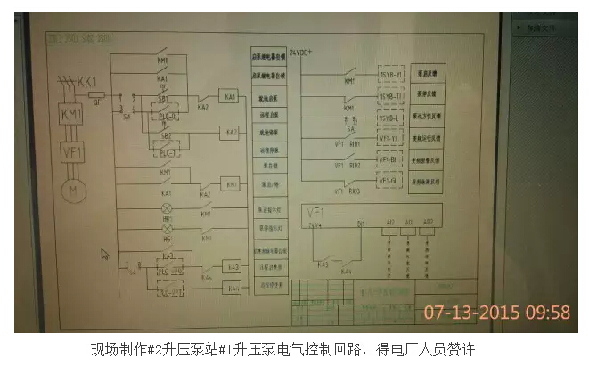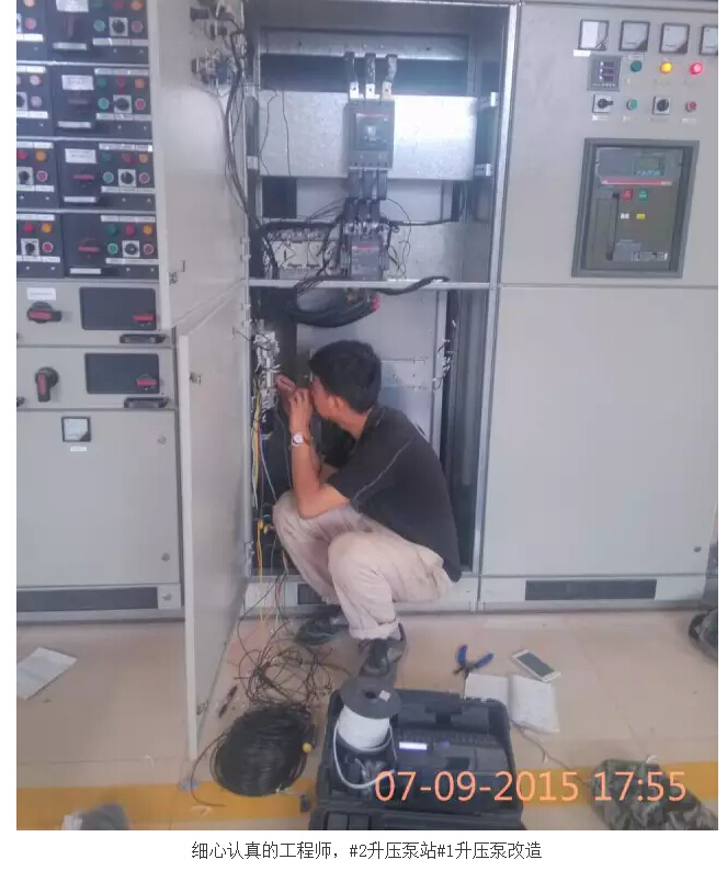 同時在同一地點的另一施工現(xiàn)場,在公司總工程師、工程部經(jīng)理姜崇明領(lǐng)導(dǎo)下,水廠的無人化值守程控部分改造緊鑼密鼓的推進。#2升壓泵站的變頻自動供水、節(jié)水泵站遠程自動控制、二級泵站供水閥自動、全廠排污坑自動排水、取水泵站取水泵和液控閥聯(lián)動自動供水、全廠視頻監(jiān)控系統(tǒng)等等,一個又一個的技術(shù)難點被攻克,一個又一個的系統(tǒng)被優(yōu)化,得到的是客戶滿意的微笑,收獲得是公司員工的成長。