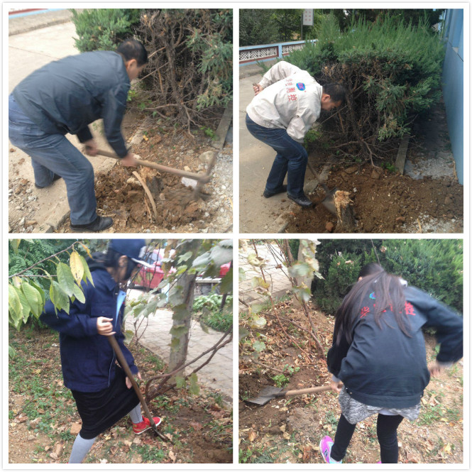 最后一組負(fù)責(zé)鏟除花壇中枯死的樹(shù)根,大家?jiàn)^勇?tīng)?zhēng)先、眾志成城,終于順利鏟除了花壇中的四個(gè)“根深蒂固”的老樹(shù)根。