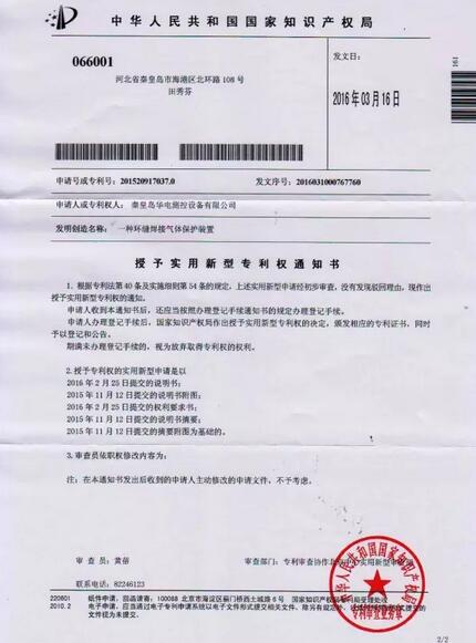 公司于2015年11月12日提交的“一種環(huán)縫焊接氣體保護裝置”專利已被中華人民共和國國家知識產(chǎn)權局授權實用新型專利權。