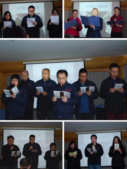 此次朗誦比賽高潮迭起、異彩紛呈,各個部門在選材、朗誦形式、服裝隊形等方面別出心裁、力求不凡:國貿部學貫中西,用中英雙語朗誦了《弟子規》,讓人眼前一亮;工程部借著快板演出,鏗鏘有力地朗誦,將比賽推向高潮;管理部更是將《弟子規》帶入了家庭,開場就是子女的誦讀錄音,伴著統一的傳統服飾,一出場就讓古韻流淌、文化傳承……每個部門都用自己的方式詮釋了《弟子規》的內涵,每個節目都發人深思。這些精彩的節目源自于大家對《弟子規》精神的深入理解和持續踐行。最終,工程部脫穎而出,獲得了本次比賽的一等獎,管理部和生產部也分獲二、三等獎。