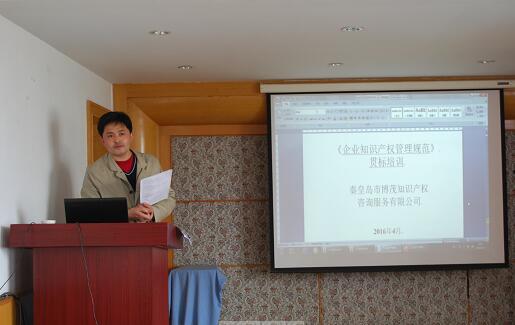 為貫徹實施創新驅動發展戰略,提高企業自主創新能力和核心競爭力,培育企業知識產權競爭優勢,切實做好知識產權管理標準推行工作,公司特邀請秦皇島市博茂知識產權咨詢服務公司孟主任,于2016年4月27日進行了知識產權貫標培訓,公司副總經理劉劍鋒、總工程師崔明思、質量管理者代表田秀芬、各部門經理及內審員均參加了此次培訓。