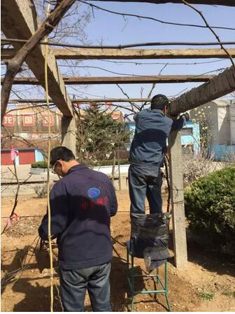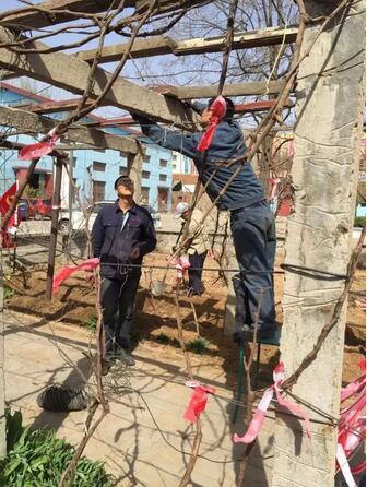 正值春暖花開(kāi)、草長(zhǎng)鶯飛之際,公司花園一派生機(jī)勃勃的景象,在公司黨支部書記兼副總經(jīng)理劉劍鋒的帶領(lǐng)下,張勇清、尹新磊、劉冬建、任有志、張靜于周六下午來(lái)到公司進(jìn)行葡萄架的搭建和培植,并翻土疏松,為樹(shù)木植被澆水。