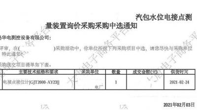 【企業動態】中標喜訊!我公司成功中標某電廠電接點液位計改造項目” 2021-02-072021年2月3日,我公司在大唐集團安徽某電廠的電接點液位計改造項目的競標中,憑借強大的綜合實力以及過硬的產品質量,通過層層篩選、激烈角逐,以絕對的優勢順利中標。 該項目采用公開招標方式,我公司自收到招標信More