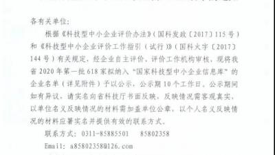 【企業(yè)要聞】祝賀華電測控入選2020年第一批河北省科技型中小企業(yè)” 2020-04-02近日,河北省科技廳根據(jù)《科技型中小企業(yè)評價辦法》(國科發(fā)政【2017】115號)、《科技型中小企業(yè)評價辦法工作指引(試行)》(國科火字【2017】144號)要求,公示通過河北省2020年第一批“科技型中小企業(yè)”名單。我公司憑借在企業(yè)More
