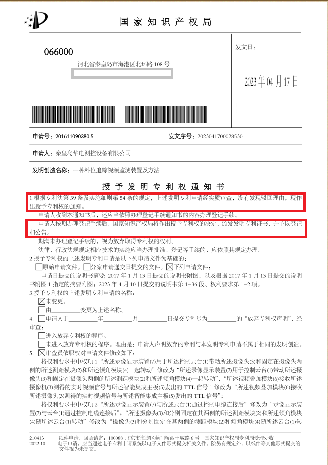 秦皇島華電測(cè)控集團(tuán)董事長(zhǎng)劉吉川先生受邀赴烏蘭察布考察” 2023-06-07一年春作首,萬(wàn)事行為先。近日,秦皇島華電測(cè)控集團(tuán)有限公司董事長(zhǎng)劉吉川先生一行人受到烏蘭察布建設(shè)管理委員會(huì)邀請(qǐng)進(jìn)行項(xiàng)目實(shí)地考察。 4月19日上午,劉吉川董事長(zhǎng)在當(dāng)?shù)?/div>More4月19日下午,全市兩新組織黨建工作調(diào)度會(huì)議在市民中心8504會(huì)議室召開(kāi)。會(huì)上宣讀了《關(guān)于印發(fā)2023 年度非公企業(yè)和社會(huì)組織“星級(jí)黨組織”評(píng)定結(jié)果的通知》并為More我公司發(fā)明專(zhuān)利《一種料位追蹤視頻檢測(cè)裝置及方法》(專(zhuān)利號(hào)201611090280.5)被國(guó)家知識(shí)產(chǎn)權(quán)局正式授予專(zhuān)利權(quán)。 2023年4月17日,秦皇島華電測(cè)控設(shè)備有限公司收到國(guó)家知識(shí)產(chǎn)權(quán)More萬(wàn)物勃發(fā)春光好,處處皆聞奮蹄聲。 春天是一個(gè)富有生命力的季節(jié),也是一個(gè)美麗且充滿希望的季節(jié)!萬(wàn)物復(fù)蘇,百花齊放,正如秦皇島華電測(cè)控集團(tuán)第一季度的業(yè)績(jī)一般,遍地花開(kāi),一More揚(yáng)帆逐夢(mèng) 職引未來(lái)——華電測(cè)控集團(tuán)應(yīng)邀參加燕山大學(xué)2023屆畢業(yè)生春季就業(yè)洽談會(huì)” 2023-06-072023年4月15日,人社部2023年全國(guó)大中城市巡回招聘-燕山大學(xué)站暨燕山大學(xué)2023屆畢業(yè)生春季就業(yè)洽談會(huì)在西校區(qū)里仁教學(xué)樓舉辦。我公司受邀參加了本次就業(yè)洽談會(huì),集團(tuán)常務(wù)副More2023年4月12日,華電測(cè)控集團(tuán)董事長(zhǎng)劉吉川先生邀華潤(rùn)電力內(nèi)蒙古新能源公司項(xiàng)目部相關(guān)負(fù)責(zé)人赴烏拉特中旗參加政府招商引資工作洽談會(huì),為企業(yè)經(jīng)營(yíng)和經(jīng)濟(jì)發(fā)展助力賦能。More喜報(bào):華電測(cè)控正式加入內(nèi)蒙古綠色產(chǎn)業(yè)促進(jìn)會(huì)碳中和專(zhuān)業(yè)委員會(huì)!為廣泛團(tuán)結(jié)和凝聚內(nèi)蒙古自治區(qū)“碳達(dá)峰、碳中和”各方力量,搭建信息交流、學(xué)術(shù)研究和技術(shù)推廣服務(wù)平臺(tái)More今年6月是第22個(gè)全國(guó)“安全生產(chǎn)月”。5月31日上午國(guó)務(wù)院安委辦、應(yīng)急管理部、省安委辦、省應(yīng)急管理廳召開(kāi)2023年全國(guó)、全省“安全生產(chǎn)月”活動(dòng)視頻會(huì)議More華電測(cè)控參加第十一屆國(guó)際清潔供暖空調(diào)熱泵展覽會(huì)” 2023-05-285月20日,內(nèi)蒙古第十一屆國(guó)際清潔供暖空調(diào)熱泵展會(huì)第二天,秦皇島華電測(cè)控集團(tuán)子公司-內(nèi)蒙古華電測(cè)控環(huán)保科技有限公司(下稱(chēng)“內(nèi)蒙古華電測(cè)控”)攜旗下主打產(chǎn)品、核心技More2023年5月,一則喜訊從河北省住房和城鄉(xiāng)建設(shè)廳傳來(lái):我公司以完備的安全生產(chǎn)管理機(jī)構(gòu)、健全的安全生產(chǎn)責(zé)任制等順利通過(guò)安全生產(chǎn)許可新申請(qǐng),并獲得了河北省住房和城鄉(xiāng)建設(shè)廳頒發(fā)More日前,秦皇島市總工會(huì)《關(guān)于授予2023年秦皇島市五一勞動(dòng)獎(jiǎng)和秦皇島市工人先鋒號(hào)的決定》(秦工字﹝2023﹞36 號(hào))文件知悉,秦皇島華電測(cè)控設(shè)備有限公司“崔明思創(chuàng)新工作室&rdMore