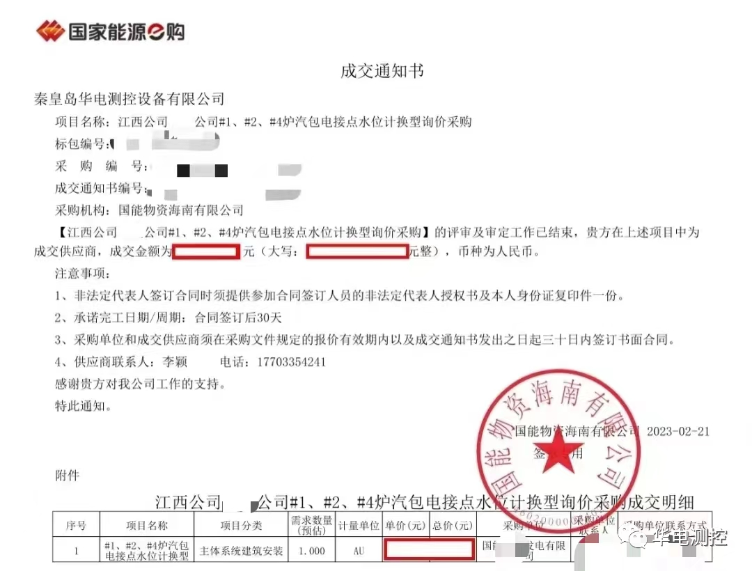 華電測控成功中選國能江西某公司#1、#2、#4爐汽包電接點水位計換型采購項目” 2023-02-21春回大地,萬物復蘇。在這個生機勃勃的時節,華電測控全體員工以飽滿的狀態、高漲的熱情和十足的干勁兒,迎來了一個又一個捷報!2月21日,我們的專利產品高精度取樣電極傳感器成功中More